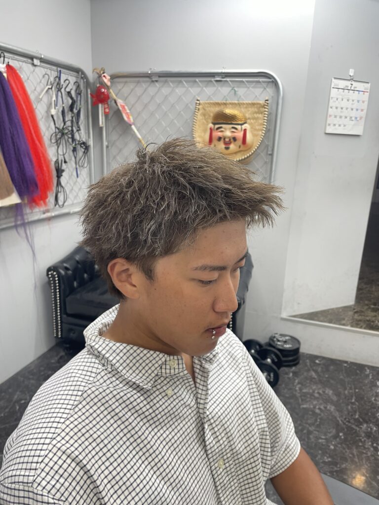 ツイストパーマを当てたスパイキーショートスタイルで、どちらかとゆうとイケイケの尖り系のスタイルになります‼️